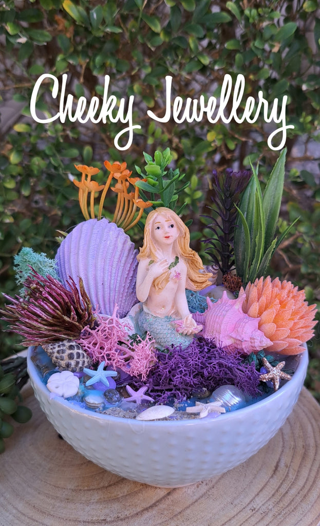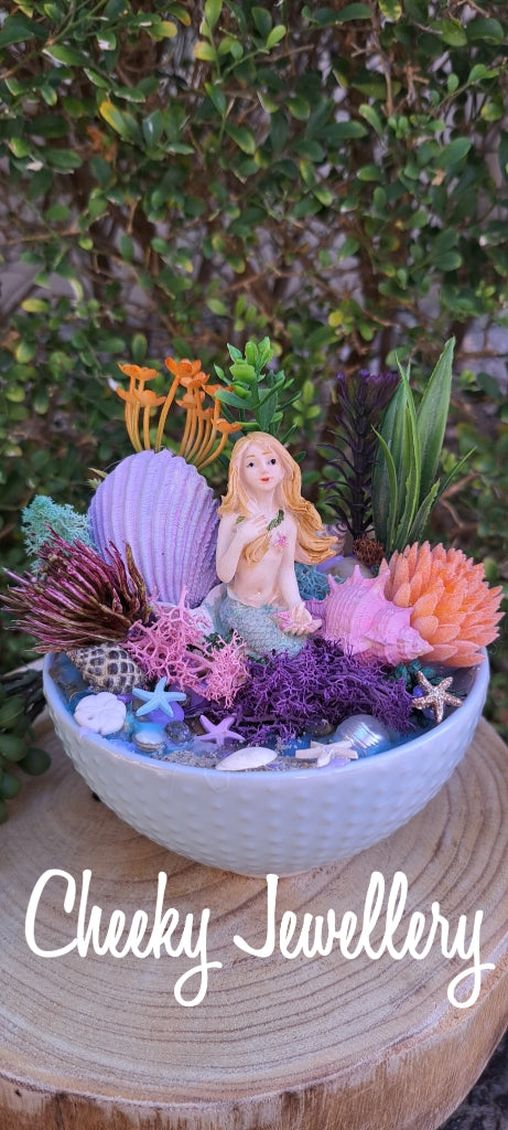 Mermaid gardens themescapes with shells acrylic star fish, mother of pearl. Imagination play. Imagination play.