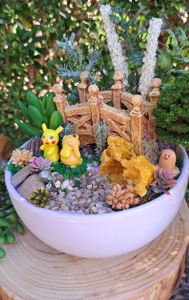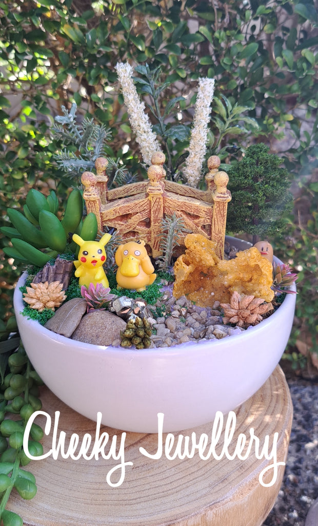 Pikachu and Pyduck pokemon desert inspired themescapes, with bridge and desert terrain and stunning crystals.