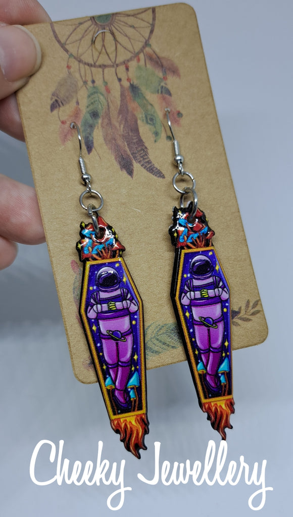 Groovy space Earrings, goth jewellery, all so cute. Resin earrings, dangly earrings. Horror Earrings. Light weight.