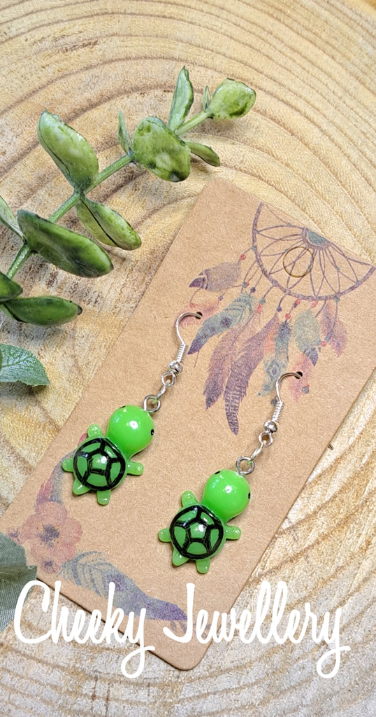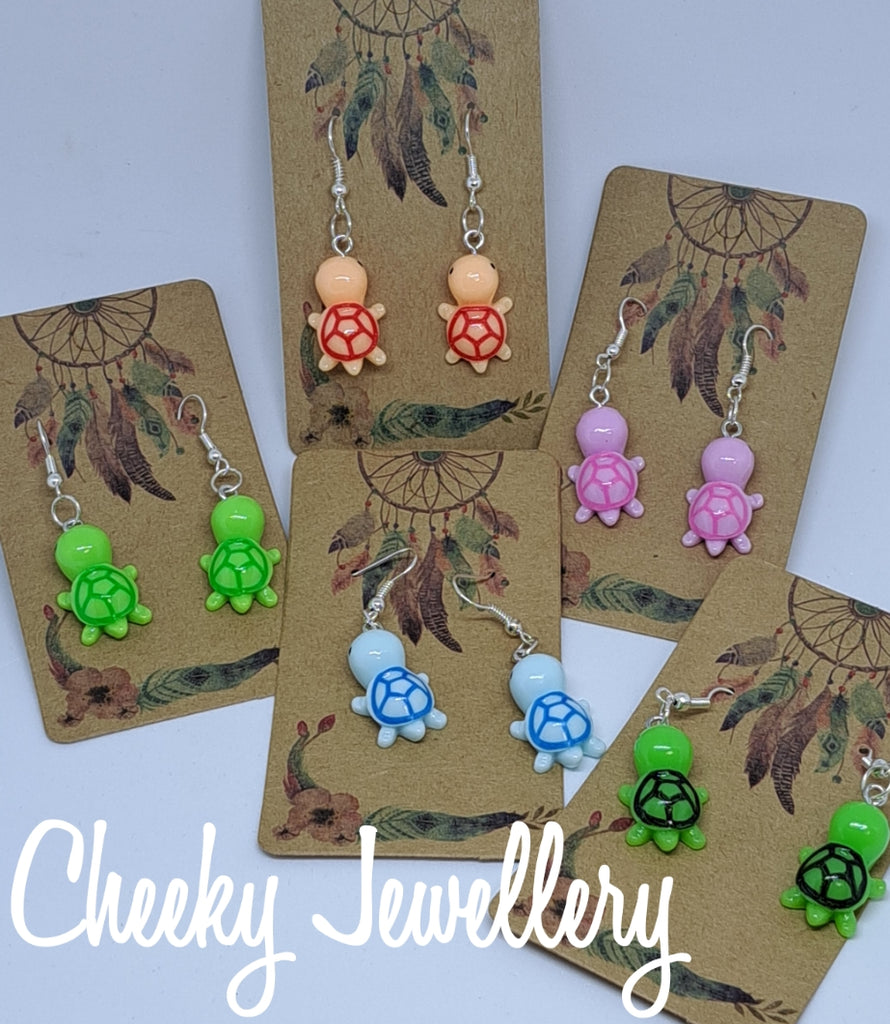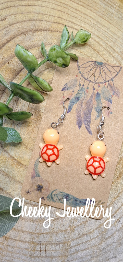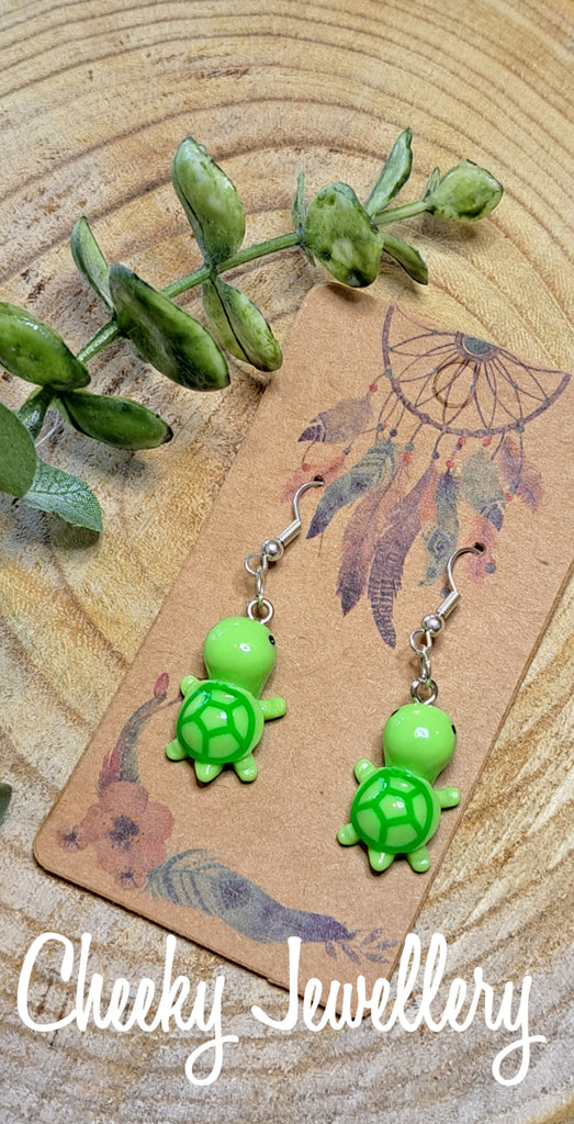 Kawaii turtle Character earrings, gotta collect the all so cute. Resign earrings, dangly earrings.