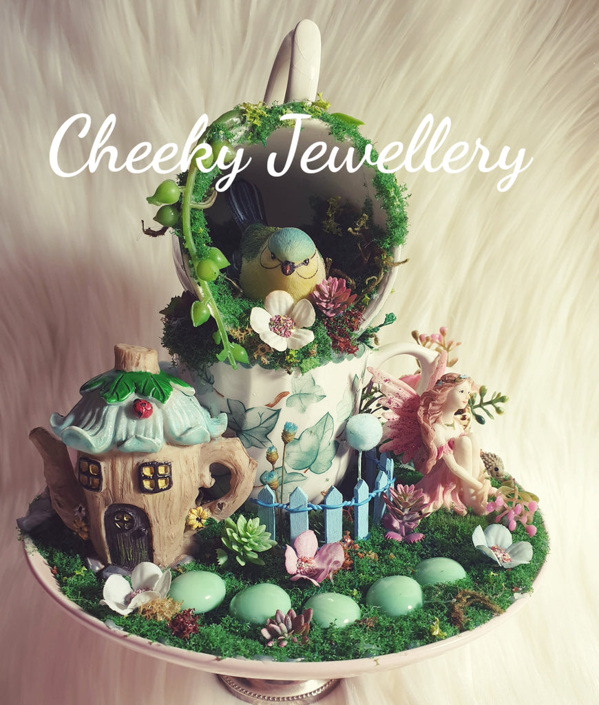#CheekyJewellery #fairies #handmade #teaparty #supportlocal #Australia #parties #handmade #girls #Gifts #BedroomDecor #Birthdays #Presents #birthdayparties #centrepiece #partydecor #stackedtracups #teacups #floraldecor #oldfashionteacups #Ibelieveinunicorns #Ibelieveinfairies #rainbowsandlollipops #fairygarden #greentreefrog #swallow #fairyhouse
